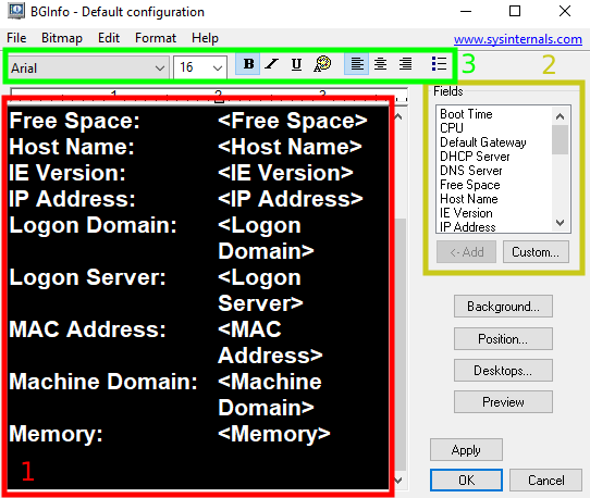 برگردیم به موضوع؛ یه روز که واقعا این مشکل کلافم کرده بود با خودم فکر کردم که خوب میشد اگه IP یا اسم سیستم یه جایی دم دست کاربر باشه تا نیازی نباشه بخواد دنبالش بگرده. شروع کردم به جستجو کردن و به برنامهای رسیدم به اسم BgInfo که خوشبختانه خوده مایکروسافت هم توسعه داده و چیز خوبیه. لینک صفحه مستندات و دانلود رو پایین براتون میذارم و میتونید بخونید ولی اگه جواب کامل رو میخواید ادامه نوشته رو بخونید.